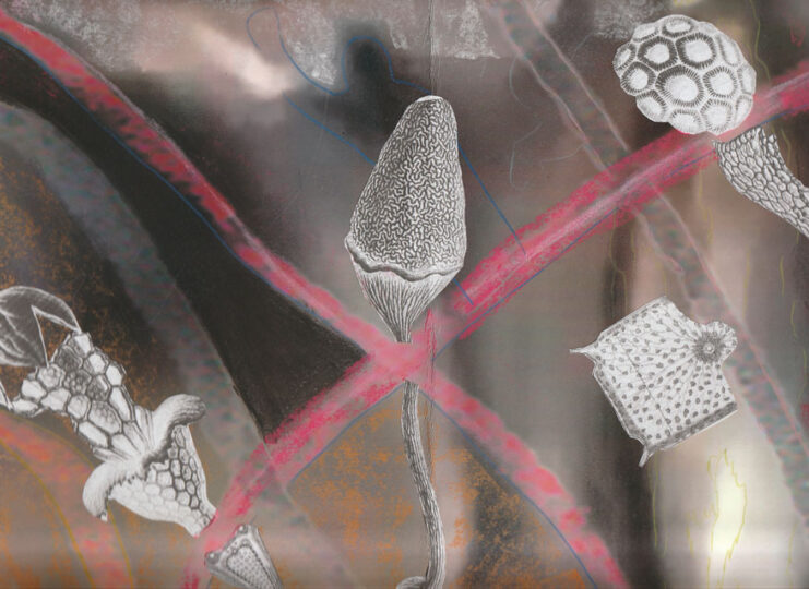 „Hommage an Ernst Haeckel“, 2025 Ausschnitt aus Leporello, 4 Doppelseiten 37 x 24 cm, Mischtechnik, 2025