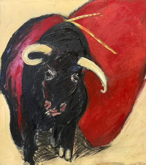 Christel Dillbohner, „Kleiner Stier“, Fassadenfarbe/Lack auf Nessel,130x120cm, 1985