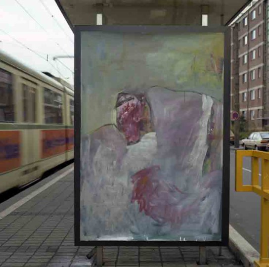 Christel Dillbohner, „Kleiner Stier“, Fassadenfarbe/Lack auf Nessel,130x120cm, 1985