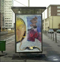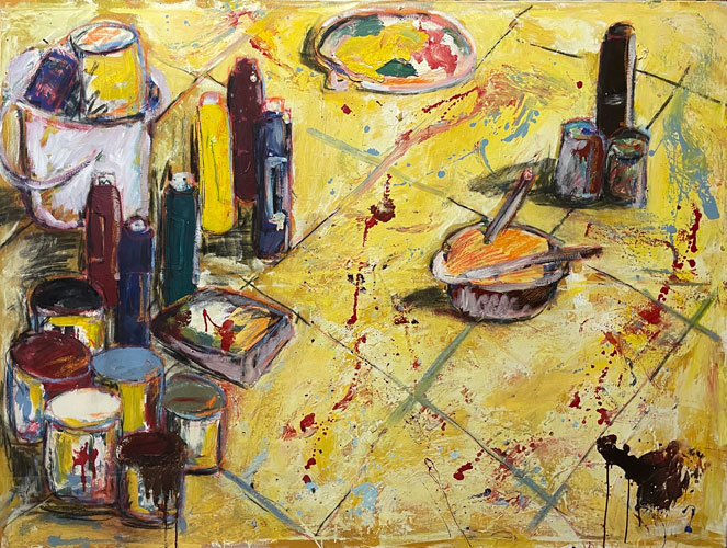 Stilleben2,Fassadenfarbe auf Nessel, 200x140cm, 1983 -