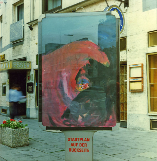 Inge Kamps „Kunst statt/als Werbung“ 1986, Acryl auf Papier, jeweils 125×170 cm